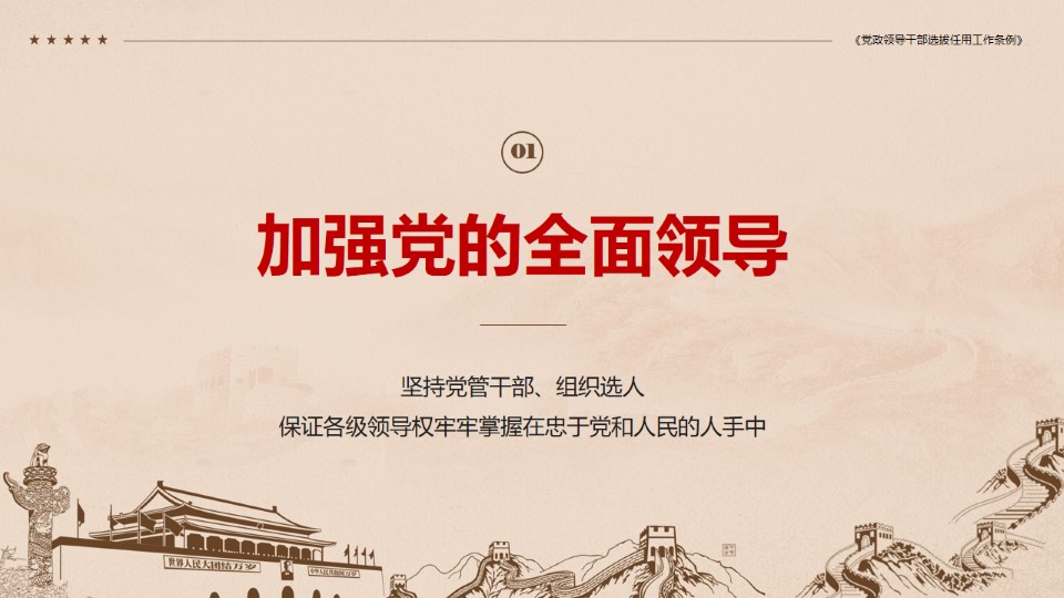 标题:新思想指引干部队伍建设阔步前行-党政领导干部选拔任用工作条例(公文堂原创课件)