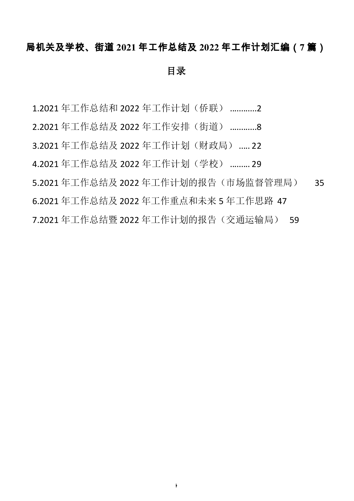 标题:局机关及学校、街道2021年工作总结及2022年工作计划汇编(7篇)