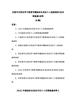2021年税务局党员领导干部党史学习教育专题组织生活会个人对照检查检视剖析党性分析材(7篇)目录关于xxX税务部门深入开展党史学习教育方案X税务局机关党支部书记党史学习教育专题组织生活会个人对照检查材料1税务局机关党支部书记党史学习教育专题组织生活会个人检视剖析材料2区税务局干部组织生活会五个方面检视剖析材料3党史学习教育专题组织生活会个人检视剖析材料(税务系统)4某市税务局机关支部党史学习教育专题组织生活会普通党员个人检视材料5税务系统干部党史学习教育专题组织生活会个人检视剖析材料6X税务局党员干部党史学习教育专题组织生活会党性分析材料7关于XXX税务部门深入开展党史学习教育方案今年是中国共...