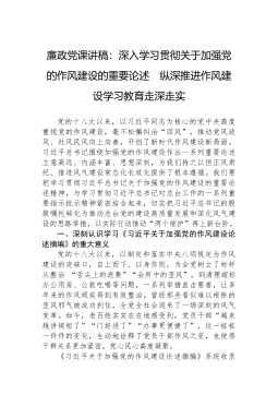 廉政党课讲稿:深入学习贯彻关于加强党的作风建设的重要论述 纵深推进作风建设学习教育走深走实