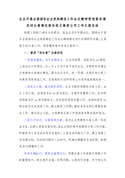企业开展全国国有企业党的建设工作会议精神贯彻落实情况回头看情况报告范文集团公司工作汇报总结