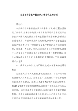 在全县安全生产暨防汛工作会议上的讲话同志们:今天我们召开县安委会第三次全体(扩大)会议暨全县防汛工作会议,主要任务是深入学习贯彻习近平总书记关于安全生产和防灾减灾救灾工作的重要指示批示精神,全面落实省委省政府、市委市政府的决策部署,分析研判当前我县面临的严峻形势,对下一阶段的安全生产和防汛工作进行再动排、再部署、再压实。刚才,会议传达了上级有关精神,通报了全县安全生产形势和省驻点包抓组反馈问题整改情况,部分乡镇和单位作了发言,讲得都很好,我都同意。下面,我再强调三点意见。一、提高政治站位,认清严峻形势,时刻绷紧安全发展这根弦安全生产,关乎人民福祉,事关发展大局。习近平总书记反复强调,“人民至上、生命至上”,这是我们一切工作的根本出发点和落脚点。近期,从XX省XX市的饭店火灾事故,到XX省XX...