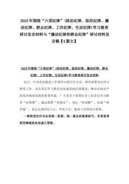 2024年围绕“六项纪律”(政治纪律、组织纪律、廉洁纪律、群众纪律、工作纪律、生活纪律)学习教育研讨发言材料与“廉洁纪律和群众纪律”研讨材料发言稿【4篇文】