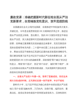 廉政党课:准确把握新时代新征程全面从严治党新要求,自觉锤炼党性意识、筑牢思想防线