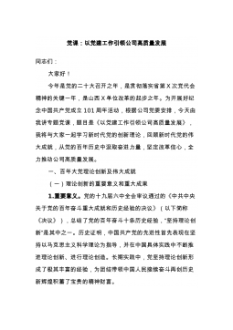 XX市2023年国有企业党的建设工作要点2023年全市国企党建工作的总体要求是:坚持以习近平新时代中国特色社会主义思想为指导,全面贯彻党的二十大和二十届历次全会精神,深入学习贯彻习近平总书记视察贵市重要讲话精神、关于国有企业改革发展和党的建设重要论述,认真贯彻落实省第十三次党代会、市第八次党代会和年度市管企业党组织书记抓党建述职评议暨2023年全市国企党建工作部署会精神,衷心拥护“两个确立”,忠诚践行“两个维护”,自觉运用党的百年奋斗重大成就和历史经验,弘扬伟大建党精神,坚持稳字当头、稳中求进,坚持党要管党、全面从严治党,紧紧围绕推进新时代党的建设新的伟大工程,推进国企党建巩固提升、创新拓展、...