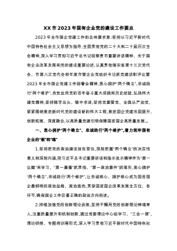 XX市2023年国有企业党的建设工作要点