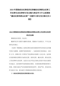 2024年围绕政治纪律组织纪律廉洁纪律群众纪律工作纪律生活纪律研讨发言稿与理论学习中心组围绕“廉洁纪律和群众纪律”专题学习研讨发言稿【共5篇】