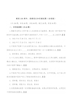 党史党建模拟题2021年