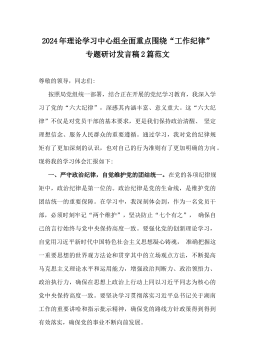 2024年理论学习中心组全面重点围绕“工作纪律”专题研讨发言稿2篇范文
