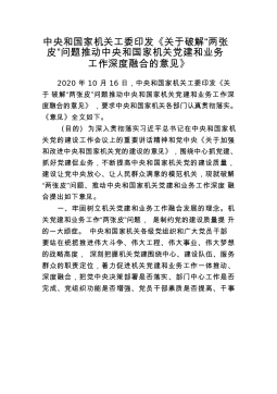 中央和国家机关工委印发《关于破解“两张皮”问题推动中央和国家机关党建和业务工作深度融合的意见》