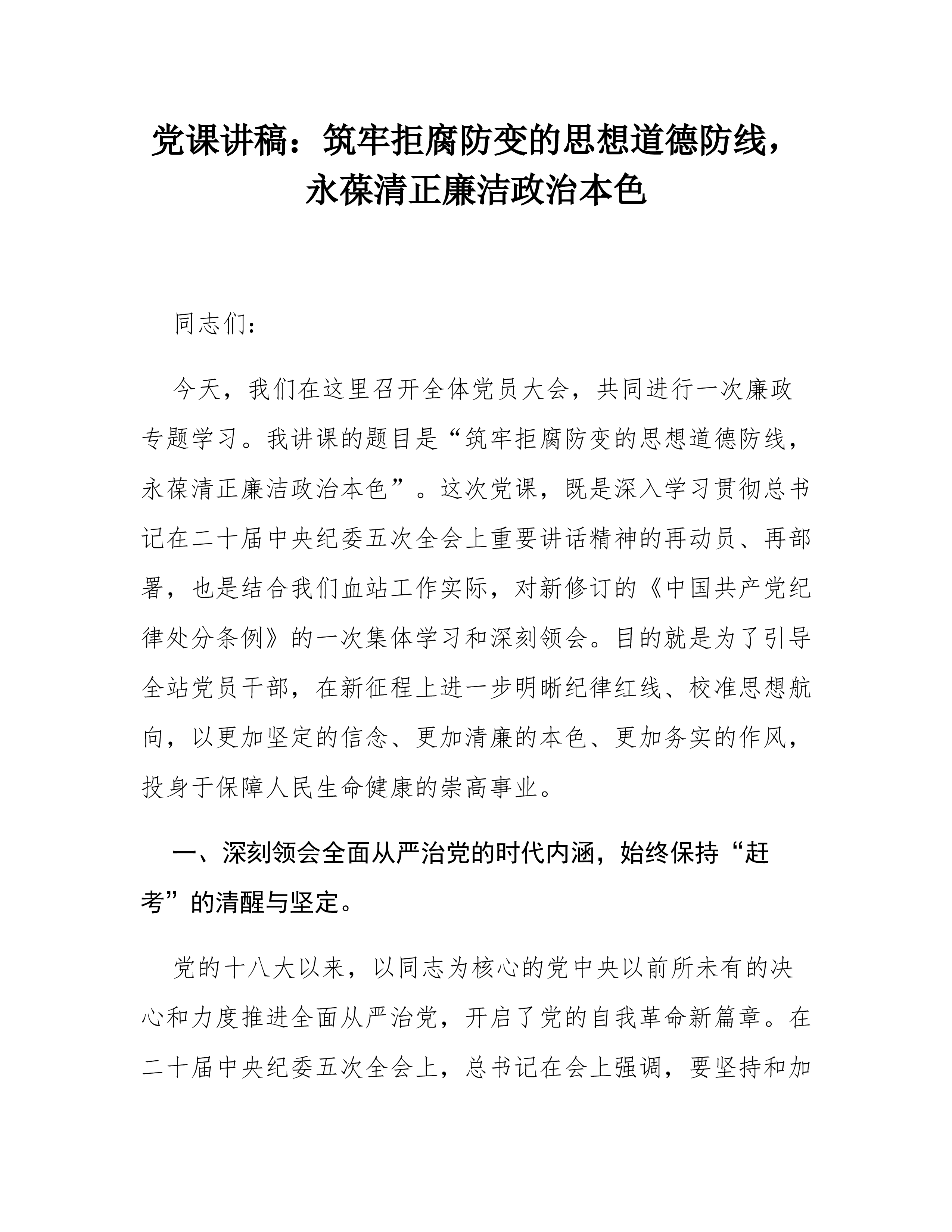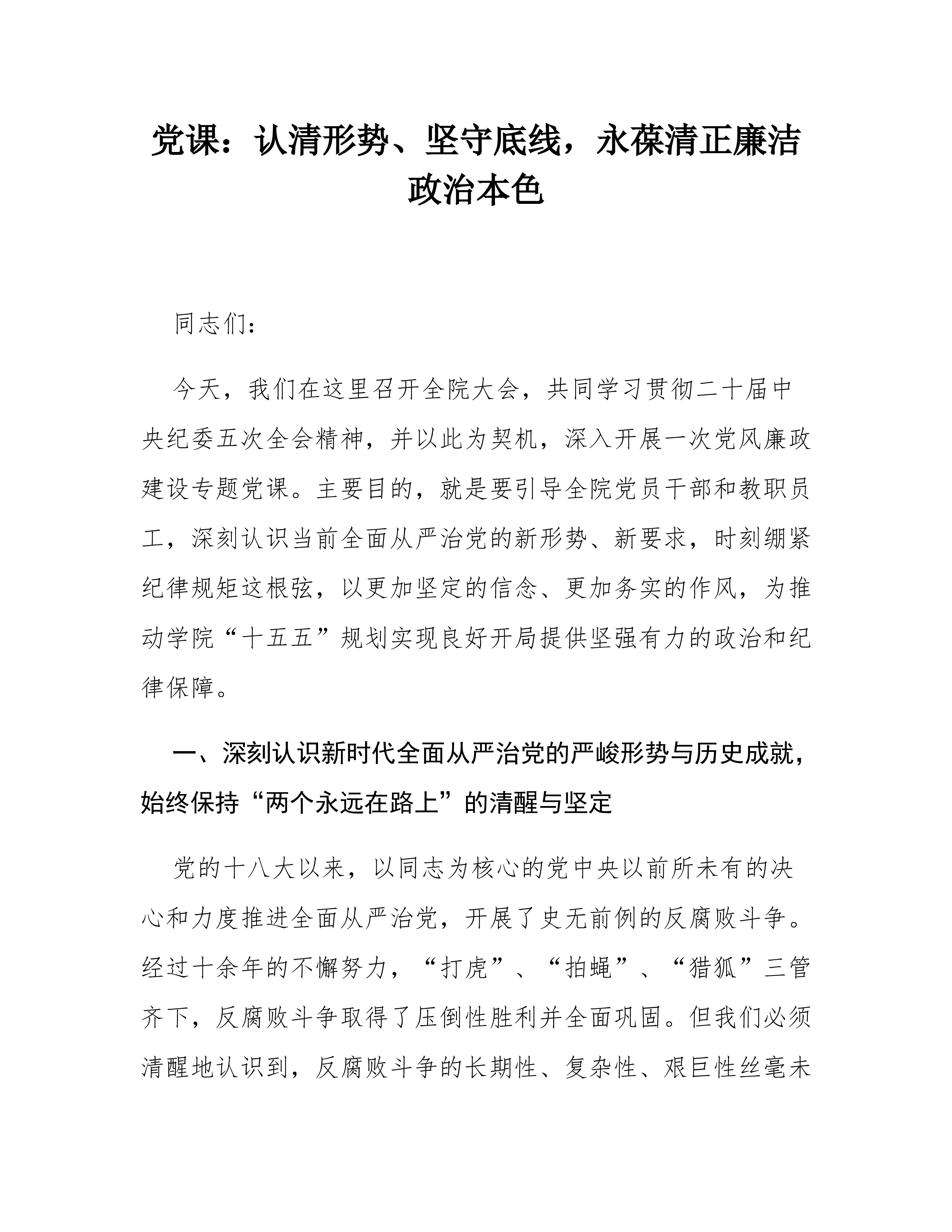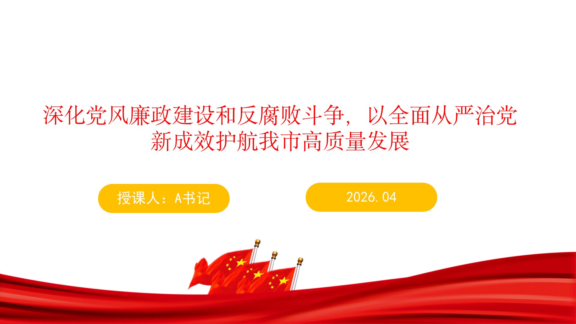深化党风廉政建设和反腐败斗争,以全面从严治党新成效护航我市高质量发展授课人:A书记2026.04目录一、深刻领悟全面从严治党的重大意义,切实增强思想自觉和行动自觉二、扎实推进全面从严治党向纵深发展,以正风肃纪反腐新成效护航高质量发展三、加强自身建设,锻造忠诚干净担当的纪检监察铁军第一部分深刻领悟全面从严治党的重大意义,切实增强思想自觉和行动自觉34思想指引与根本遵循4形势严峻任务艰巨4护航发展意义重大第二部分扎实推进全面从严治党向纵深发展,以正风肃纪反腐新成效护航高质量发展34强化政治监督4深化作风建设4一体推进三不腐4树立正确政绩观4完善监督体系第三部分加强自身建设,锻造忠诚干净担当的纪检监察铁军34政治过硬铸忠诚4能力过硬强本领4作风过硬扬斗志4纪律过硬守底线4使命在肩继往开来结束语全面...