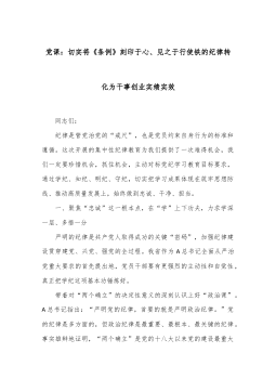 部长在组织部机关党支部“学党纪 明底线 守规矩”主题党日活动上的党课讲稿