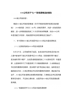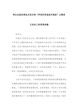 部长在组织部机关党支部“学党纪明底线守规矩”主题党日活动上的党课讲稿 同志们: 中国共产党自成立以来,团结带领中国人民书写了中华民族几千年历史上最恢宏的史诗,中华民族伟大复兴进入不可逆转的历史进程。这改天换地的历史伟业,跟中国共产党一以贯之推进组织建设是分不开的。习近平总书记指出:“党的力量来自组织。”纵观中国共产党波澜壮阔的历史,就是一部不断加强组织建设的历史。回顾党的组织建设的历史脉络,总结党的组织建设的逻辑遵循,对于我们党在新时代新征程上一以贯之推进强国建设和民族复兴伟业,具有重大意义。根据党支部庆七一系列活动安排,今天,由我为大家作一堂党课报告,与同志们共同交流。 一、以正确组织...