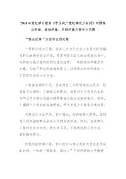 2024年党纪学习教育《中国共 产 党纪律处分条例》对照群众纪律、政治纪律、组织纪律方面存在问题