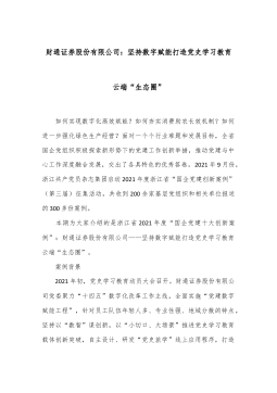 财通证券股份有限公司:坚持数字赋能打造党史学习教育云端“生态圈” 如何实现数字化高效赋能?如何夯实消费助农长效机制?如何进一步强化绿色生产经营?面对一个个行业难题和发展目标,全省国企党组织积极探索新形势下的党建工作创新举措,推动党建与中心工作深度融合发展,交出了各具特色的优秀答卷。2021年9月份,浙江共产党员杂志集团启动2021年度浙江省“国企党建创新案例”(第三届)征集活动,共收到200余家基层党组织和相关单位报送的300多份案例。 本期为大家介绍的是浙江省2021年度“国企党建十大创新案例”:财通证券股份有限公司——坚持数字赋能打造党史学习教育云端“生态圈”。 案例背景 2021...