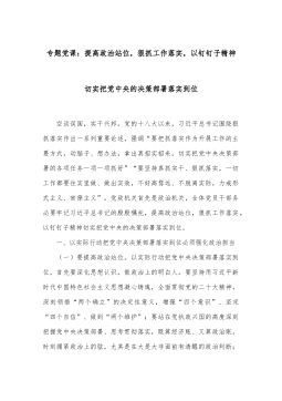 专题党课:提高政治站位,狠抓工作落实,以钉钉子精神切实把党中央的决策部署落实到位