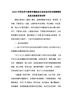 2021年党史学习教育专题组织生活会机关党支部普通党员盘点检视发言材料