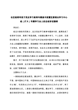 在区级领导班子党史学习教育专题读书班暨区委理论学习中心组(扩大)专题学习会上的总结讲话提纲 (2)
