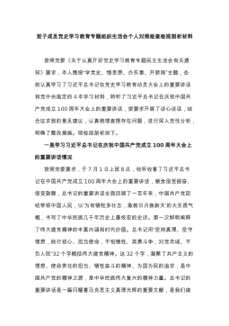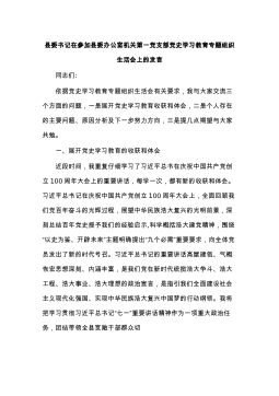 县委书记在参加县委办公室机关第一党支部党史学习教育专题组织生活会上的发言