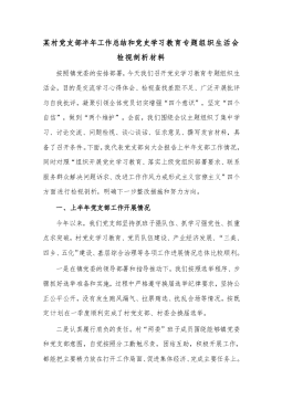 某村党支部半年工作总结和党史学习教育专题组织生活会检视剖析材料