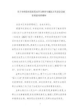 关于市科技局党组党史学习教育专题民主生活会会前征求意见的通知