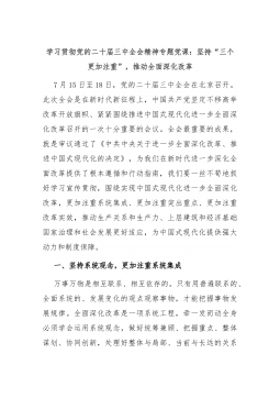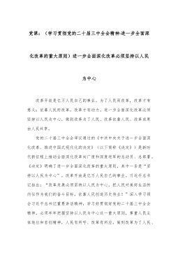 党课:(学习贯彻党的二十届三中全会精神·进一步全面深化改革的重大原则)进一步全面深化改革必须坚持以人民为中心 改革开放是亿万人民自己的事业。为了人民而改革,改革才有意义;依靠人民而改革,改革才有动力。进一步全面深化改革必须坚持以人民为中心,做到改革为了人民、改革依靠人民、改革成果由人民共享。 党的二十届三中全会审议通过的《中共中央关于进一步全面深化改革、推进中国式现代化的决定》(以下简称《决定》)是新时代新征程上推动全面深化改革向广度和深度进军的总动员、总部署。《决定》明确了进一步全面深化改革的重大原则,其中一条是“坚持以人民为中心”。改革开放是亿万人民自己的事业。习近平总书记指出:“改革...