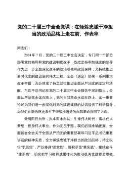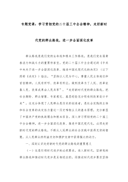 专题党课讲稿:推动新时代机关党的建设高质量发展,为进一步全面深化改革、推进中国式现代化提供坚强保证同志们:机关党的建设是党的建设的重要组成部分,直接关系党中央权威和集中统一领导,直接影响党中央决策部署贯彻落实成效,直接体现为人民群众的利益诉求能否实现。习近平总书记强调,新时代新征程上,要坚持和加强党的全面领导和党中央集中统一领导,深刻领会和把握进一步全面深化改革的主题、重大原则、重大举措、根本保证,在进一步全面深化改革、推进中国式现代化上走在前、作示范。各级机关党组织必须严格落实机关党建主体责任,以深化党的建设制度改革推动机关党建高质量发展,建设让党放心、让人民满意的模范机关,为进一步全面深化...