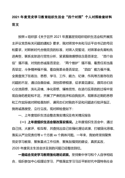 班子成员_2021年度党史学习教育组织生活会“四个对照”个人对照检查材料(含2020年度组织生活会整改落实情况_)