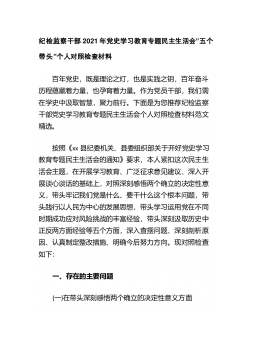 2021年度党史学习教育组织生活会“四个对照”个人对照检查材料范文按照x组织部《关于召开2021年度基层党组织组织生活会和开展民主评议党员有关问题的通知》要求,我对照党中央和习近平总书记的号召和要求,对照新时代合格党员的标准,对照入党誓词,对照革命先辈和先进典型,联系实际进行党性分析,紧紧围绕理想信念是否坚定,“四个自信”强不强,对党的忠诚是否坚定,“两个维护”强不强,看责任担当是否坚定,斗争精神强不强,看自我革命是否坚定,“四自”能力强不强,全面查找了在政治、思想、学习、工作、能力、纪律、作风等方面存在的问题的不足,通过自查自省、深挖思想根源,征求意见建议、跟同志们谈心交流思想,洗礼灵魂、净...