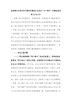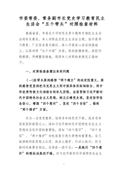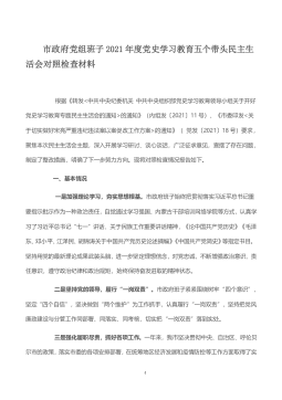 县委常委领导班子党史学习教育专题民主生活会“五个带头”对照检查发言材料(6862字)按照《XX市纪委机关、市委组织部、市委党史学习教育领导小组办公室关于开好党史学习教育专题民主生活会的通知》要求,县委常委班子高度重视,认真组织开展了集中学习,深入开展谈心谈话,广泛征求意见建议,对照“学史明理、学史增信、学史崇德、学史力行”和“学党史、悟思想、办实事、开新局”的目标要求,围绕“带头深刻感悟“两个确立”的决定性意义、带头牢记我们党是什么要干什么这个根本问题、带头践行以人民为中心的发展思想、带头学习运用党在不同历史时期成功应对风险挑战的丰富经验、带头深刻汲取党史中正反两方面经验”等五个方面重点内容,...
