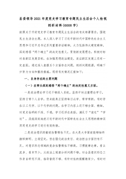县委常委领导班子党史学习教育专题民主生活会“五个带头”对照检查发言材料(6862字)