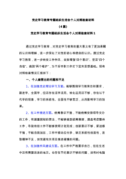 领导党员党史学习教育专题组织生活会个人检视材料(2篇)县处级领导党史学习教育专题组织生活会个人检视材料1根据党史学习教育专题组织生活会的有关部署要求,本人聚焦会议主题,对照学习总书记在庆祝中国共产党成立100周年大会上的重要讲话精神,对照学习新时代中国特色社会主义思想和党中央指导指定学习材料情况。对照党史学习教育目标要求,对照党员先锋模范作用的发挥,再次重点学习总书记在建党100周年大会上的重要讲话,同时,深入开展谈心谈话,广泛征求意见建议,现联系学习和工作实际,重点围绕以下方面检视。一、感悟及收获新时代中国特色按照党史学习教育目标,全面完成了对社会主义思想和党中央指定学习材料的学习,真正明白...