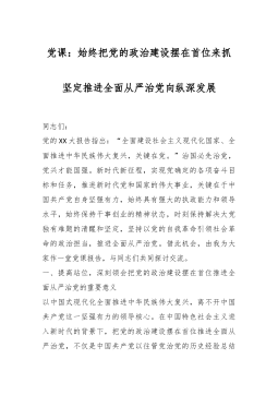 10月份专题党课:在改革开放中不断推进中国式现代化,一步一个脚印把宏伟蓝图化为美好现实同志们:党的二十届三中全会强调:“中国式现代化是在改革开放中不断推进的,也必将在改革开放中开辟广阔前景”,从历史进程中阐明了中国式现代化与改革开放的紧密联系与内在统一。全会要求“全党必须自觉把改革摆在更加突出位置,紧紧围绕推进中国式现代化进一步全面深化改革”,这是党和人民所愿,是事业发展所需。进一步全面深化改革,是在推进中国式现代化伟大实践中开启的,是在中国式现代化搭建起的宽阔平台上展开的;进一步全面深化改革,以促进中国式现代化的深化发展为使命,必须紧紧围绕推进中国式现代化来进行。壹引其纲,万目皆张。全面深入...