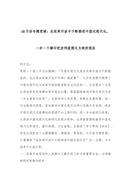 10月份专题党课:在改革开放中不断推进中国式现代化,一步一个脚印把宏伟蓝图化为美好现实