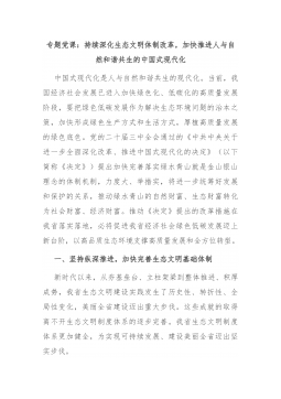 专题党课:持续深化生态文明体制改革,加快推进人与自然和谐共生的中国式现代化
