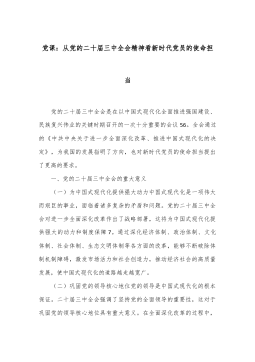 专题党课:持续深化生态文明体制改革,加快推进人与自然和谐共生的中国式现代化中国式现代化是人与自然和谐共生的现代化。当前,我国经济社会发展已进入加快绿色化、低碳化的高质量发展阶段,要把绿色低碳发展作为解决生态环境问题的治本之策,加快形成绿色生产方式和生活方式,厚植高质量发展的绿色底色。党的二十届三中全会通过的《中共中央关于进一步全面深化改革、推进中国式现代化的决定》(以下简称《决定》)提出加快完善落实绿水青山就是金山银山理念的体制机制,力度大、举措实,将进一步统筹好发展和保护的关系,推动绿水青山的自然财富、生态财富转化为社会财富、经济财富。推动《决定》提出的改革措施在我省落实落地,必将促进我省经...
