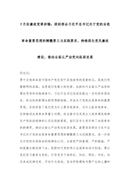 7月份廉政党课讲稿:深刻领会习总书记关于党的自我革命重要思想的精髓要义与实践要求,持续深化党风廉政建设,推动全面从严治党向纵深发展