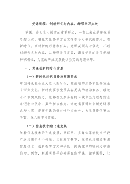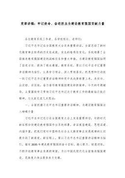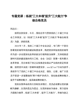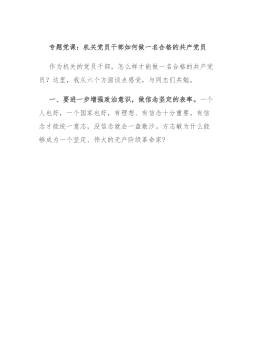 专题党课讲稿:推动新时代机关党的建设高质量发展,为进一步全面深化改革、推进中国式现代化提供坚强保证同志们:机关党的建设是党的建设的重要组成部分,直接关系党中央权威和集中统一领导,直接影响党中央决策部署贯彻落实成效,直接体现为人民群众的利益诉求能否实现。习近平总书记强调,新时代新征程上,要坚持和加强党的全面领导和党中央集中统一领导,深刻领会和把握进一步全面深化改革的主题、重大原则、重大举措、根本保证,在进一步全面深化改革、推进中国式现代化上走在前、作示范。各级机关党组织必须严格落实机关党建主体责任,以深化党的建设制度改革推动机关党建高质量发展,建设让党放心、让人民满意的模范机关,为进一步全面深化...