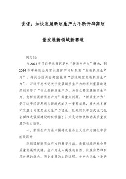 党课:以政治纪律为引领全面落实六项纪律,为推进社会主义现代化新实践提供坚强纪律保障 同志们: 当前,我们正在全面开展党纪学习教育。这次党纪学习教育,是加强党的纪律建设、推动全面从严治党向纵深发展的重要举措,展现了党中央“自我革命永远在路上”的政治清醒和行动自觉,旨在把党建设得更加坚强有力。党的十八大以来,以习近平同志为核心的党中央把纪律建设纳入新时代党的建设总体布局,强化政治纪律和组织纪律,带动各项纪律全面从严、一严到底,坚持纪严于法、执纪执法贯通,深化运用“四种形态”政策策略,党的纪律规矩鲜明地立起来、严起来,从根本上扭转了管党治党宽松软状况。习近平总书记围绕全面从严治党着力增强纪律建设...