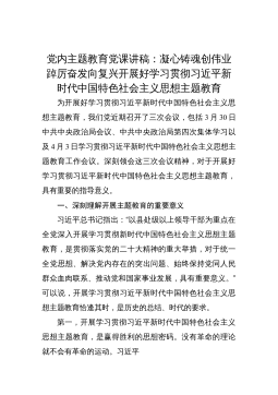 党内主题教育党课讲稿:凝心铸魂创伟业踔厉奋发向复兴开展好学习贯彻习近平新时代中国特色社会主义思想主题教育