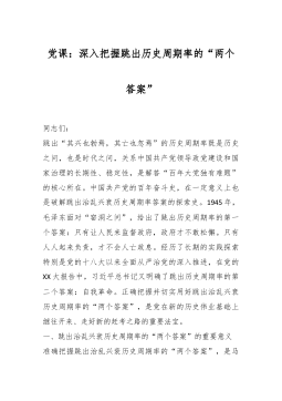 9月份专题党课:进一步全面深化改革必须坚持以人民为中心,牢牢把握以人民为中心的价值取向同志们:党的二十届三中全会《决定》提出进一步全面深化改革必须贯彻的“六个坚持”重大原则,其中之一是“坚持以人民为中心”。坚持人民利益为本,着力激发民智、凝聚民心,是坚持党中央对进一步全面深化改革的集中统一领导的根本价值立场。党员干部要牢牢把握以人民为中心的价值取向,将“我是谁、为了谁、依靠谁”这一重大执政课题作为任何工作的起始点与落脚点,不断提升全面深化改革的“含金量”,奋力书写“我将无我,不负人民”的改革新篇章。今天的专题党课,着重围绕“进一步全面深化改革必须坚持以人民为中心”这一重大原则进行讲解。一、坚持...