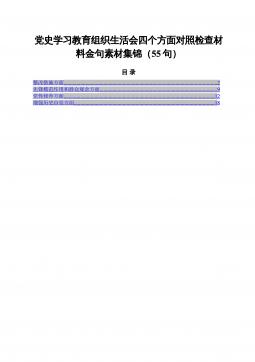 党史学习教育组织生活会对照检查问题清单、原因和措施(89条)目录1.对照党中央和习近平总书记的号召和要求方面存在的问题(13条)2.对照新时代合格共产党员标准方面存在的问题(12条)3.对照入党誓词方面存在的问题(11条)4.对照革命先辈和先进典型方面存在的问题(12条)5.“四个对照”存在问题的原因分析(21条)6.“四个对照”存在问题下一步整改措施和今后努力方向(20条)对照党中央和习近平总书记的号召和要求方面存在的问题(13条)在工作和生活中我始终以伟大号召为指引,牢记初心使命,坚定理想信念,践行党的宗旨,把各项工作干好干实干到实处。但是对照伟大号召精神,仍然存在一定的差距和短板。(平时...