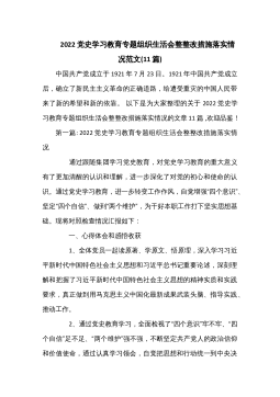 (11篇)2022党史学习教育专题组织生活会整整改措施落实情况范文范文