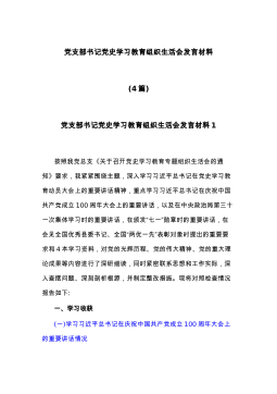 (13篇)2021年8月党支部书记代表支委班子在党史学习教育专题组织生活会总结发言稿材料