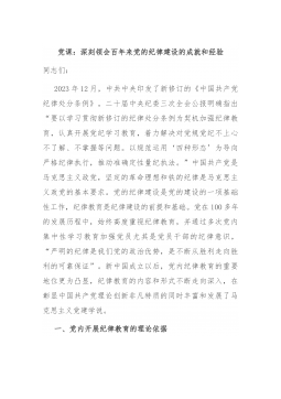 党课讲稿:学《条例》明规矩严自律树形象在深学细悟笃行中争做新时代合格党员根据上级党纪学习教育部署安排,现在由我为大家讲授党纪学习教育专题党课。同志们,经党中央同意,自2024年4月至7月在全党开展党纪学习教育。这次党纪学习教育,是加强党的纪律建设、推动全面从严治党向纵深发展的重要举措。作为党员干部,不管在什么岗位,都应当把纪律挺在前面,时刻绷紧纪律之弦、筑牢作风之堤,在讲规矩中干好事、在守纪律中干成事,把遵守党的政治纪律和政治规矩落实到自己的全部工作中去,真正使学习党纪的过程成为增强纪律意识、提高党性修养的过程。根据集团党纪学习教育安排,结合个人参加教育学习体会,与大家进行分享交流,主要分享四...