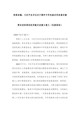 党课讲稿:习总书记关于铸牢中华民族共同体意识重要论述的原创性贡献及其重大意义(民族团结)