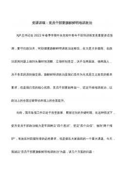党内主题教育党课讲稿:凝心铸魂创伟业踔厉奋发向复兴开展好学习贯彻习近平新时代中国特色社会主义思想主题教育为开展好学习贯彻习近平新时代中国特色社会主义思想主题教育,我们党近期召开了三次会议,包括3月30日中共中央政治局会议、中共中央政治局第四次集体学习以及4月3日学习贯彻习近平新时代中国特色社会主义思想主题教育工作会议。深刻领会这三次会议精神,对于开展好学习贯彻习近平新时代中国特色社会主义思想主题教育,具有重要的指导意义。一、深刻理解开展主题教育的重要意义习近平总书记指出:“以县处级以上领导干部为重点在全党深入开展学习贯彻新时代中国特色社会主义思想主题教育,是贯彻落实党的二十大精神的重大举措,对...