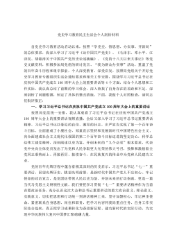 2021年机关党支部领导班子党史学习教育专题民主生活会对照检查材料