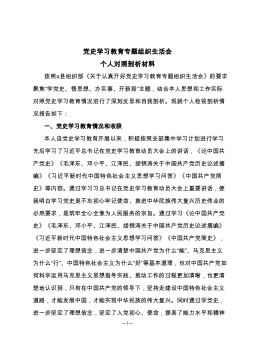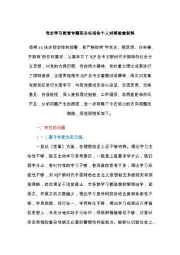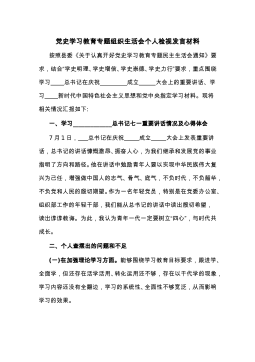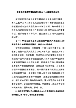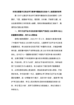 领导党员党史学习教育专题组织生活会个人检视材料(2篇)县处级领导党史学习教育专题组织生活会个人检视材料1根据党史学习教育专题组织生活会的有关部署要求,本人聚焦会议主题,对照学习总书记在庆祝中国共产党成立100周年大会上的重要讲话精神,对照学习新时代中国特色社会主义思想和党中央指导指定学习材料情况。对照党史学习教育目标要求,对照党员先锋模范作用的发挥,再次重点学习总书记在建党100周年大会上的重要讲话,同时,深入开展谈心谈话,广泛征求意见建议,现联系学习和工作实际,重点围绕以下方面检视。一、感悟及收获新时代中国特色按照党史学习教育目标,全面完成了对社会主义思想和党中央指定学习材料的学习,真正明白...