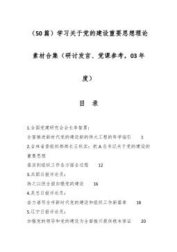 (50篇)学习关于党的建设重要思想理论素材合集(研讨发言、党课参考,03年度)
